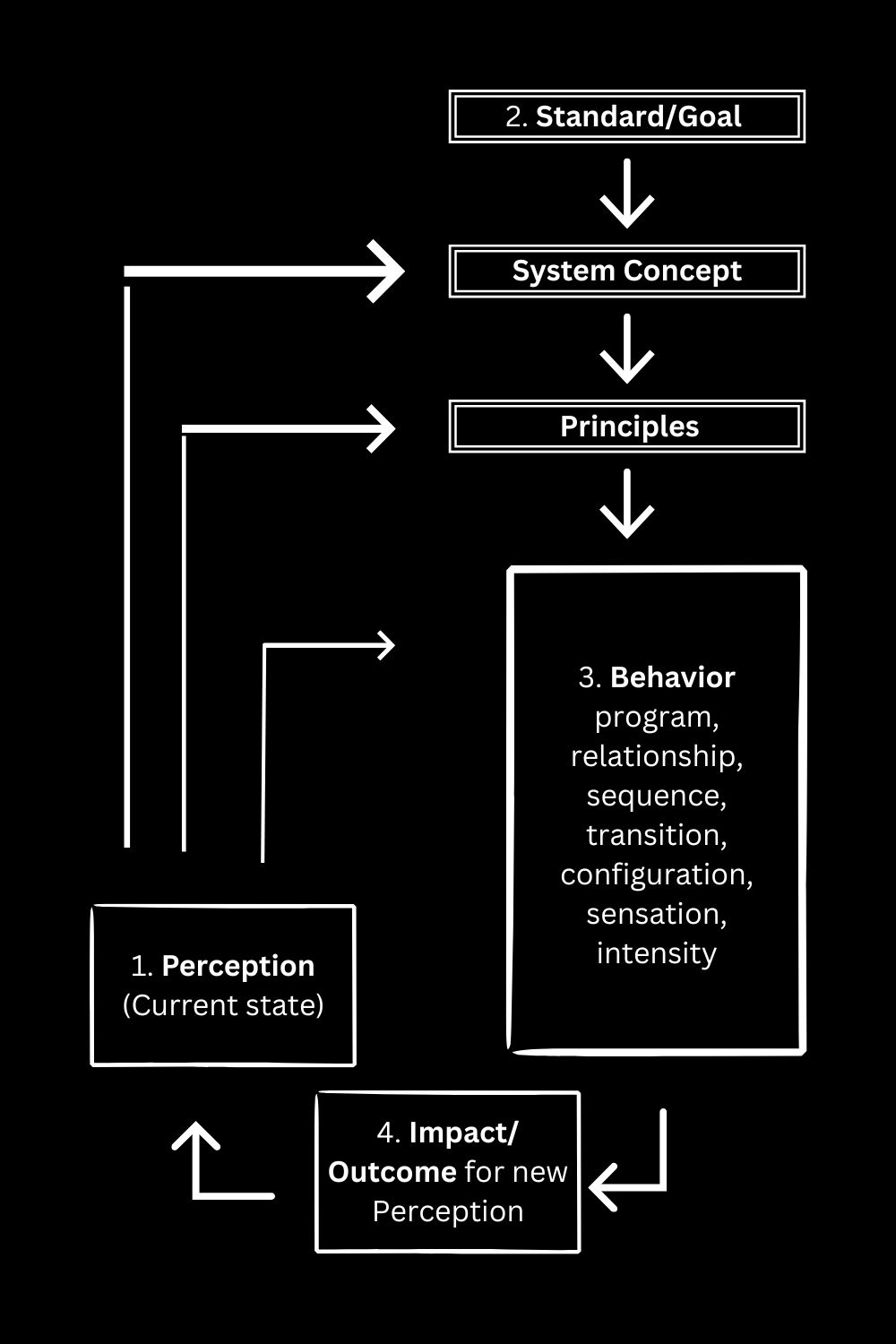 - The levels below is where the behaviors are planned and acted out, down to the specific finger movement (program, relationship, sequence, transition, configuration, sensation, intensity)